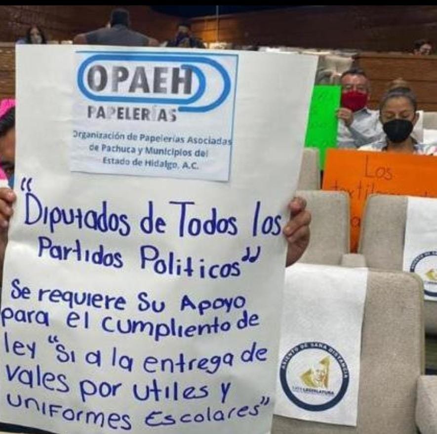 Laura Martínez Plácido, presidenta de la Organización de Papeleros del Estado de Hidalgo (OPEH), indicó que tras cuatro años de lucha, “por fin encontramos eco en las y los legisladores del congreso y no vamos a quitar el dedo del renglón para que el gobierno el estado entregue vales electrónicos y se puedan canjear en las pequeñas papelerías del estado”, expuso.