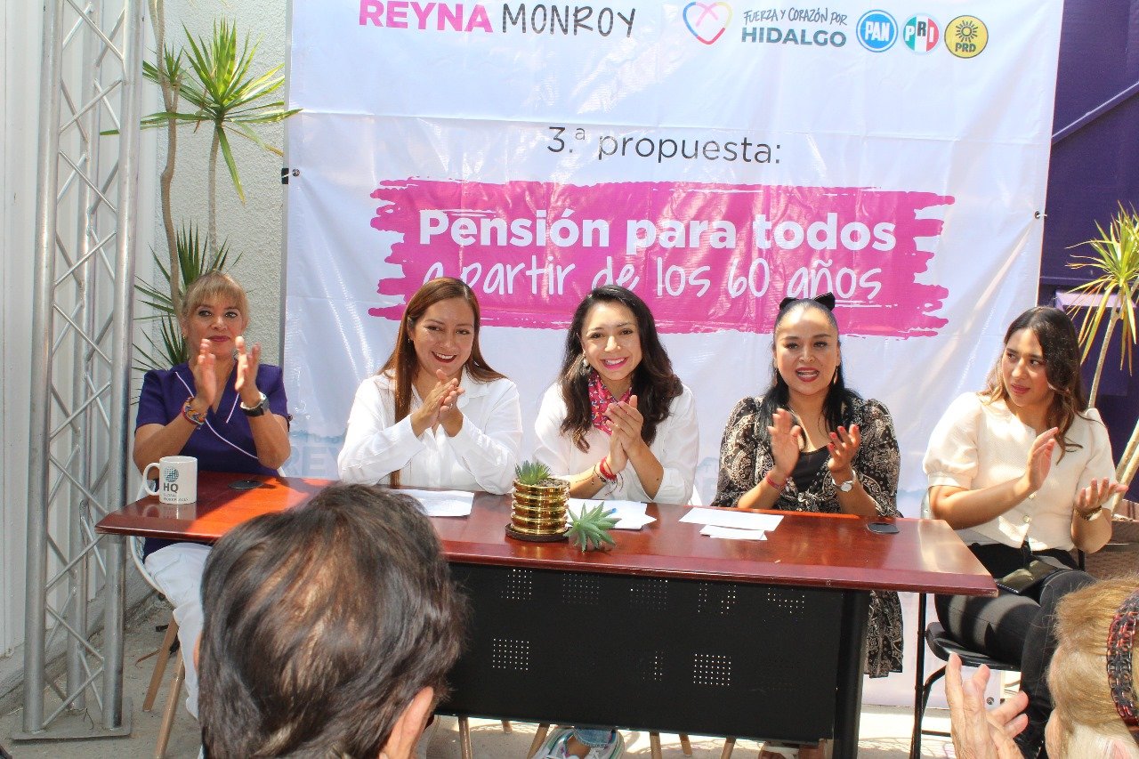 Reyna Monroy, candidata a diputada local del distrito 14, de la coalición “Fuerza y Corazón por Hidalgo”, presentó su propuesta ‘Pensión para todos desde los 60 años’.