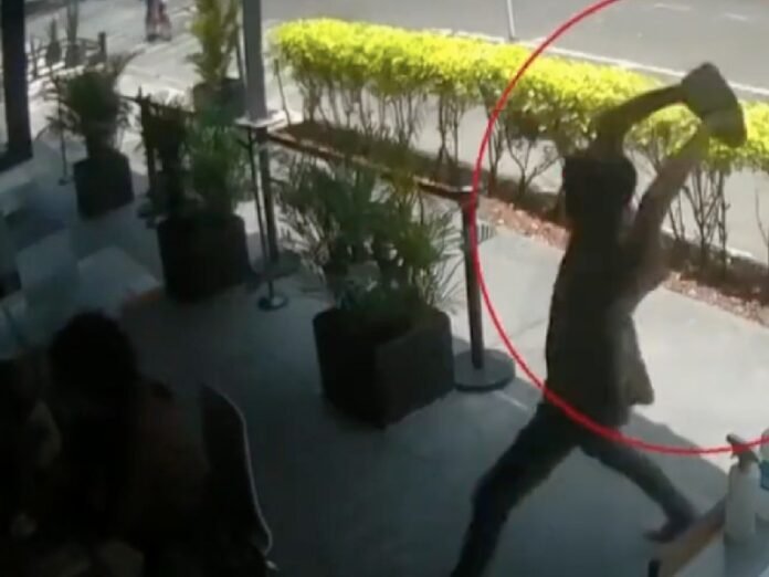 Los hechos fueron captados en video, y en las imágenes se observa que el agresor, quien viste una camisa sin mangas, pantalón negro y va descalzo, aparentemente en situación de calle, se acerca hasta la mesa donde se encuentran los comensales, y arroja una piedra de gran tamaño sobre la cabeza de un pequeño que le daba la espalda.