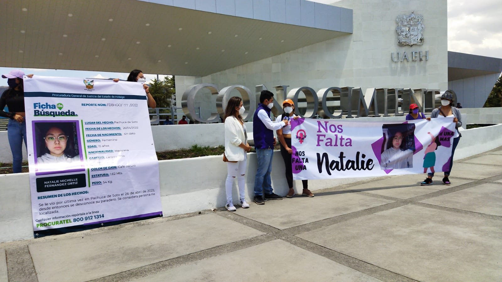 La concentración del movimiento, con el que solicitan a la sociedad ofrecer información sobre el paradero de la joven, se dio en la Ciudad del Conocimiento de la casa de estudios de Hidalgo, esta tarde de jueves y, desde ahí, con pancartas y lonas impresas con la ficha de búsqueda de la joven, invadieron la carretera Pachuca-Tulancingo para caminar y pedir a las autoridades que investiguen y encuentren a la menor de edad.