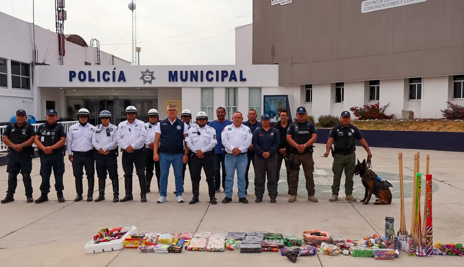 En el arranque del operativo, encabezado por el secretario de Seguridad Pública, Juan Manuel Ayala Guarro, y el director de Protección Civil, Enrique Padilla Hernández, fueron asegurados 25 kilos de pirotecnia, entre ellos productos considerados de alto riesgo como “Cara de Diablo”, “Garra de Tigre” y “Hulk”.