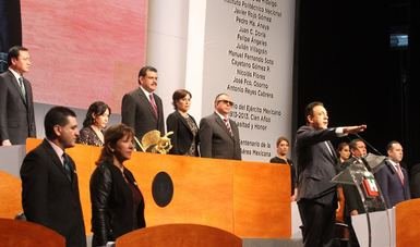 El auditorio Gota de Plata fue la sede de la sesión solemne de los diputados donde se instalaron los curules y el muro de honor del recinto legislativo.