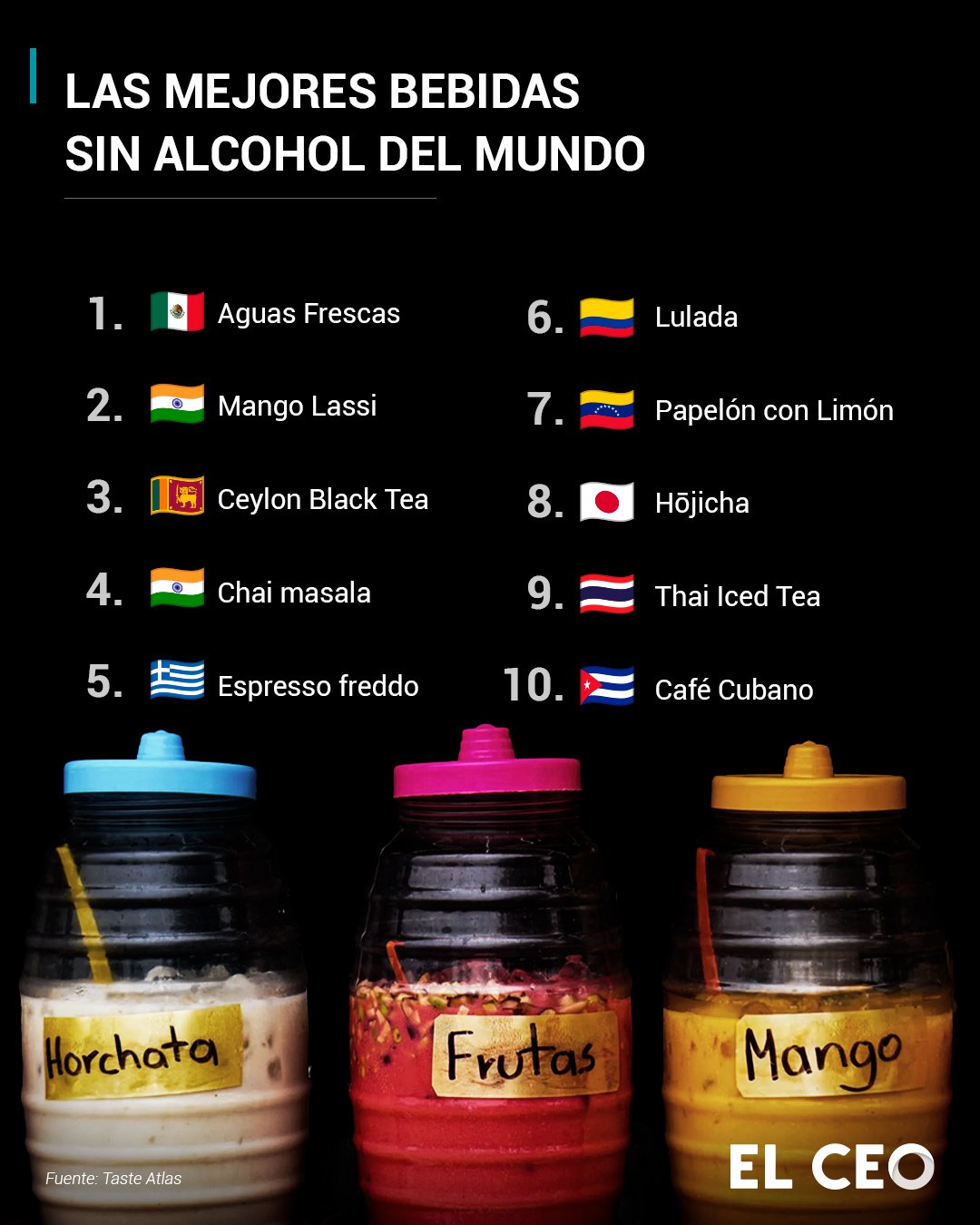 TasteAtlas compartió un top 10 de las mejores bebidas sin alcohol en el mundo, donde las aguas frescas encabezaron la lista, representando la creatividad y el poder mexicano que tenemos para refrescarnos. La lista de las mejores bebidas son las siguientes:
