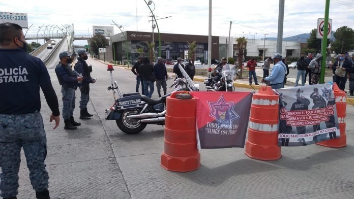 Se informa que policías estatales reanudan su manifestación e instalan un bloqueo en el boulevard Colosio.