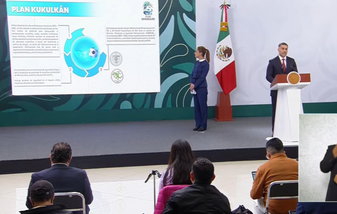 La presidenta de México, Claudia Sheinbaum, junto con el titular de la Secretaría de Seguridad y Protección Ciudadana, Omar García Harfuch, presentó el “Plan Kukulcán” una estrategia de seguridad que se implementará durante la Copa Mundial de la FIFA 2026.