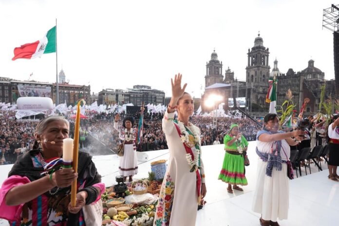 Mujeres de 70 etnias incluida la afromexicana, le entregaron el bastón sagrado de mando a la presidenta de México, Claudia Sheinbaum Pardo, quien al recibirlo y honrarlo en lo más alto, fue vitoreada por miles en el zócalo capitalino, ahí aprovechó, para lanzar su Plan de 100 puntos.