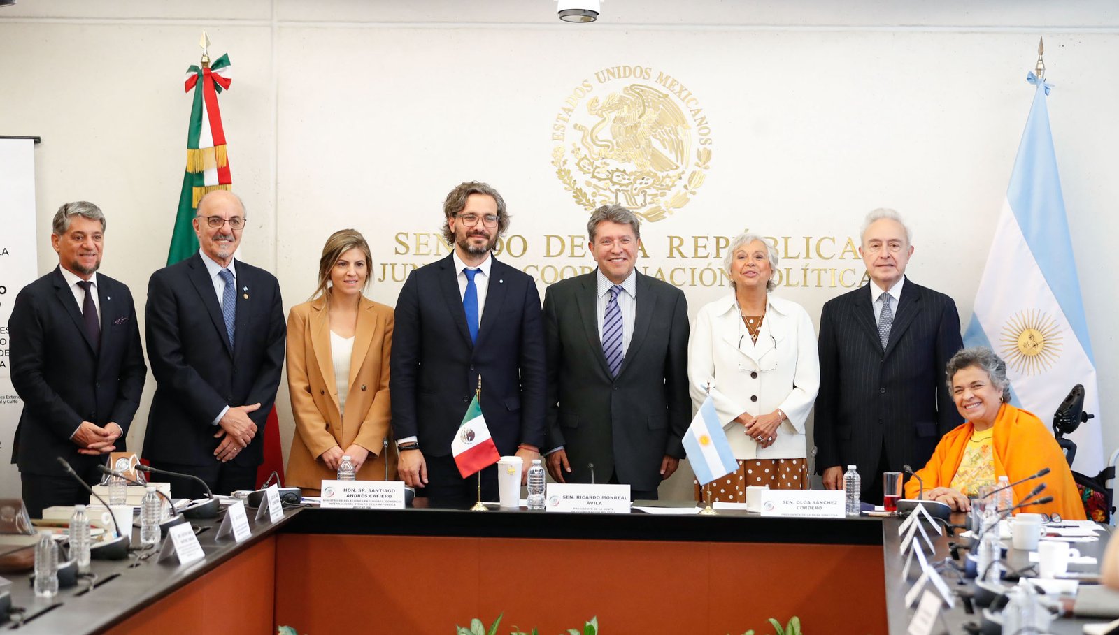 Ciudad de México, 29 de mayo de 2022.- La presidenta de la Mesa Directiva, Olga Sánchez Cordero, y el presidente de la Junta de Coordinación Política, Ricardo Monreal Ávila, se reunieron con el ministro de Relaciones Exteriores, Comercio Internacional y Culto de Argentina, Santiago Andrés Cafiero, para reactivar el Acuerdo de Asociación Estratégica y sus distintos mecanismos institucionales, el cual está vigente desde 2008.