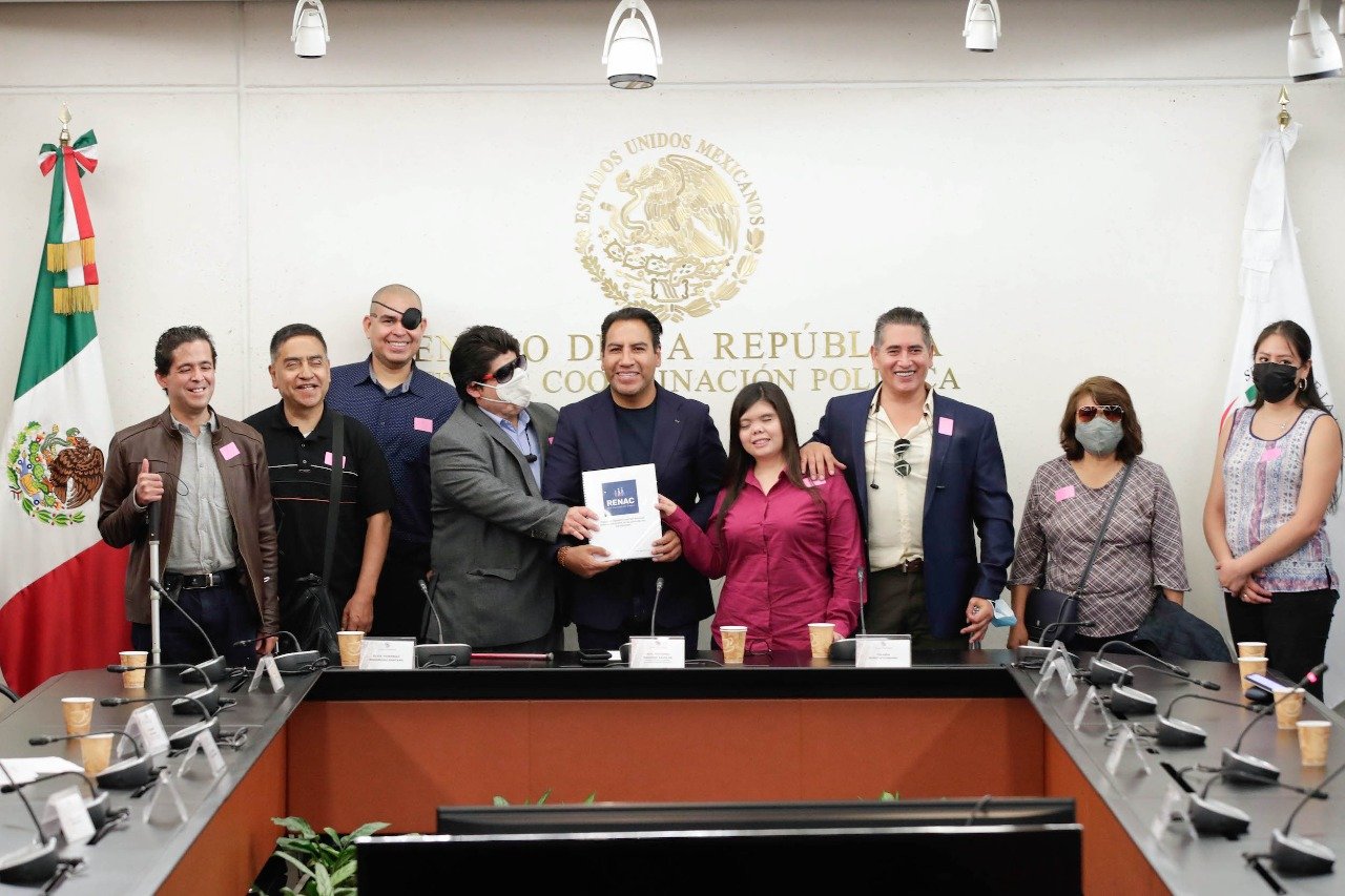 Ciudad de México, 15 de agosto de 2022.- En un encuentro celebrado en el Senado de la República, el presidente de la Comisión de Puntos Constitucionales, Eduardo Ramírez Aguilar, recibió la propuesta legislativa de la Red Nacional de Ciegos (RENAC), en materia de derechos político-electorales para las personas con discapacidad.