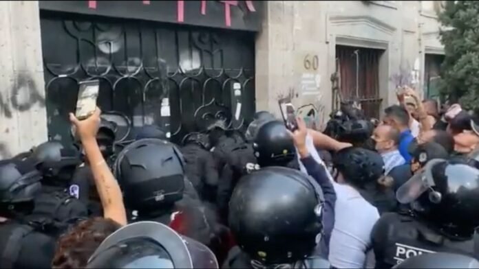 Ciudad de México, 16 de abril de 2022. – Elementos de la Secretaría de Seguridad y de la Fiscalía General de la Ciudad de México recuperaron ayer viernes las instalaciones de la Comisión Nacional de Derechos Humanos (CNDH) ubicadas en las calle República de Cuba, de la colonia Centro Histórico de la capital, tomada desde 2020 por el colectivo feminista Okupa Cuba Monumenta Viva.