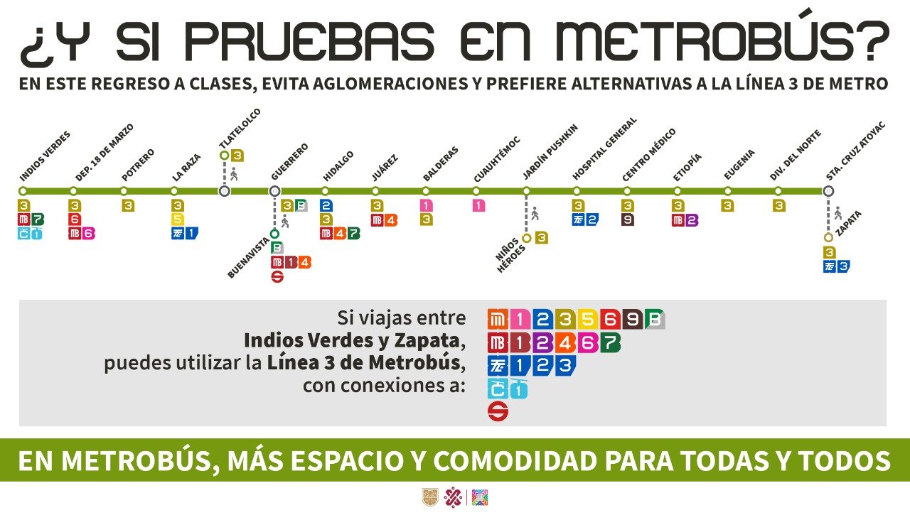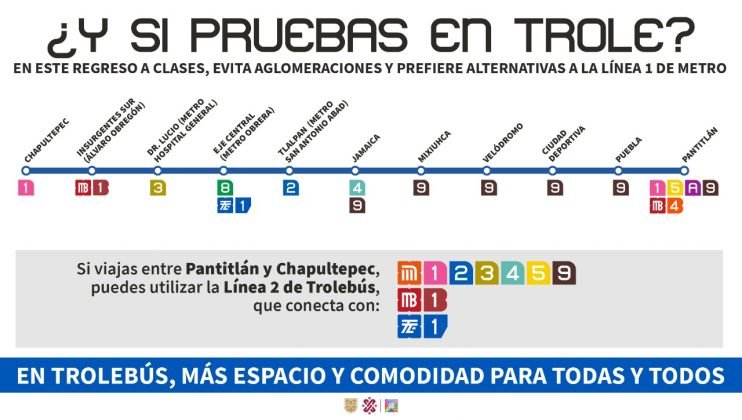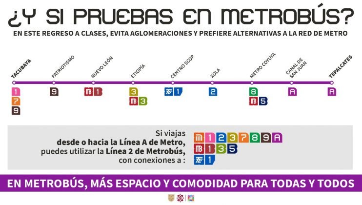 Cabe mencionar que dentro de las estaciones se colocarán mantas informativas para orientar a la ciudadanía sobre las diferentes alternativas de movilidad existentes. Con esto se busca que las líneas con mayor capacidad operativa puedan absorber una mayor parte de la demanda.