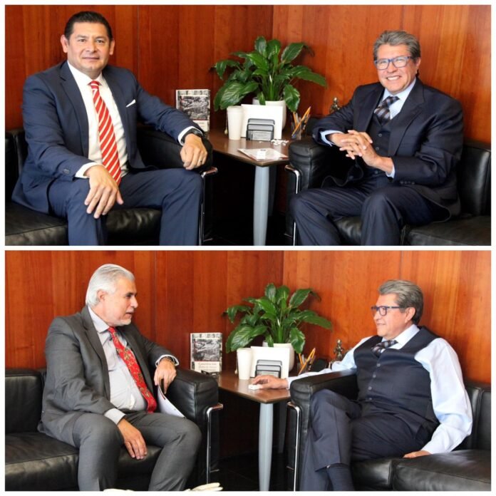 Ciudad de México, 18 de agosto de 2028.- El coordinador parlamentario de Morena, Ricardo Monreal Ávila, recibió, por separado, a los senadores José Narro y Alejandro Armenta Mier, quienes manifestaron su intención de continuar en la contienda por la Presidencia de la Mesa Directiva de la Cámara de Senadores que tendrá que decidirse a finales de este mes.