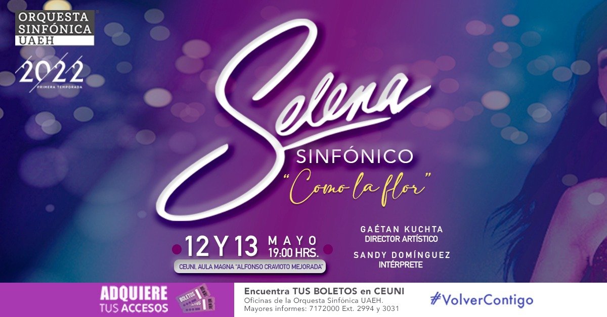 Pachuca, Hidalgo, 7 de mayo de 2022.- Bajo la dirección de Gaétan Kuchta, la Orquesta Sinfónica de la Universidad Autónoma del Estado de Hidalgo (OSUAEH), los próximos jueves 12 y viernes 13 de mayo realizará el concierto “Selena. Como la flor”.