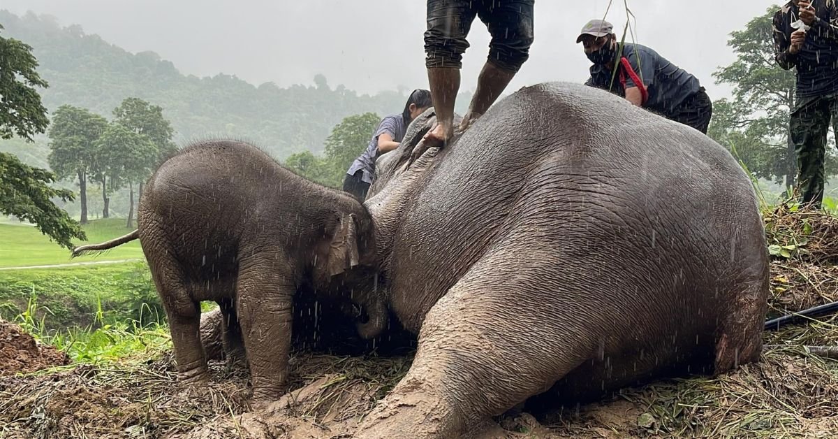 El operativo representó todo un reto para los rescatistas debido a las difíciles condiciones del terreno y el gran peso que tenía esta elefanta y su pequeña cría.