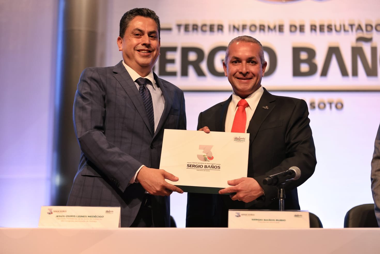 En sesión solemne de Cabildo, el presidente municipal de Pachuca, Sergio Baños Rubio, rindió su tercer informe de resultados, en el que destacó que se ha hecho más con menos.