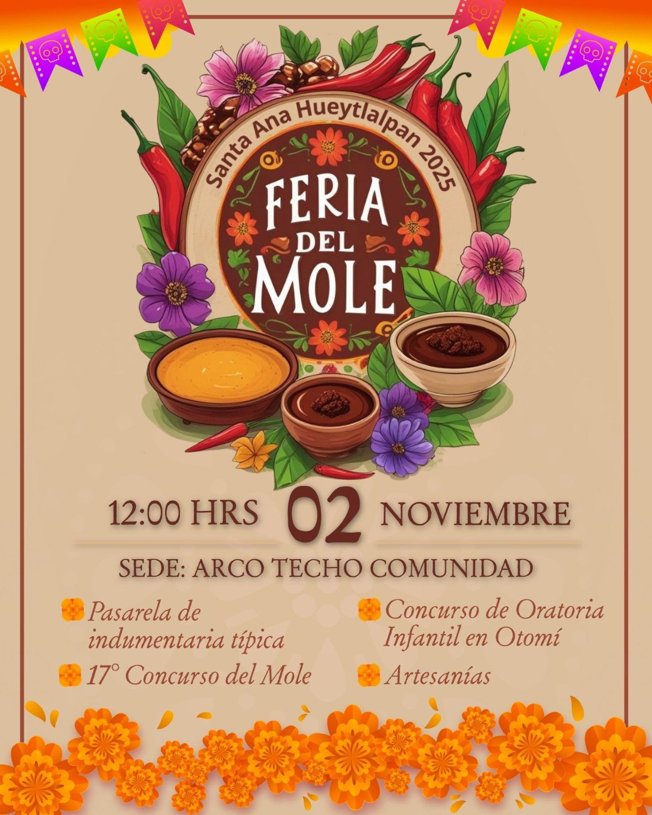Ante la cercanía de la 11ª Feria y 17º Concurso del Mole en Santa Ana Hueytlalpan, la presidenta municipal Lorena García Cázares presentó en rueda de prensa el programa de actividades que se llevará a cabo el domingo 2 de noviembre, donde se prevé la asistencia de al menos 400 personas.