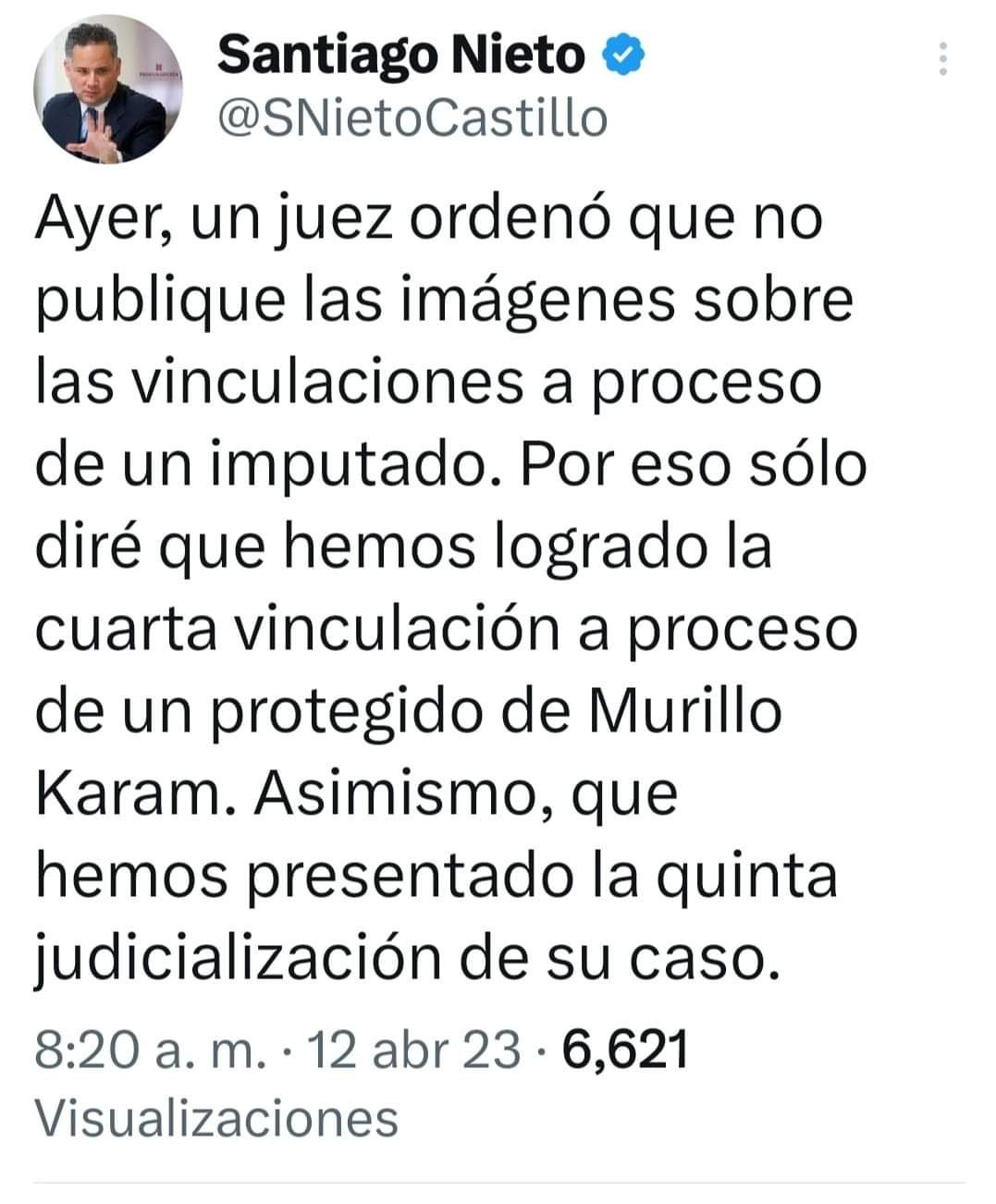 Además, Nieto reveló que el juez que ordenó no difundir imágenes del imputado fue uno de los que trabajó con Murillo Karam cuando este era titular de la FGR.