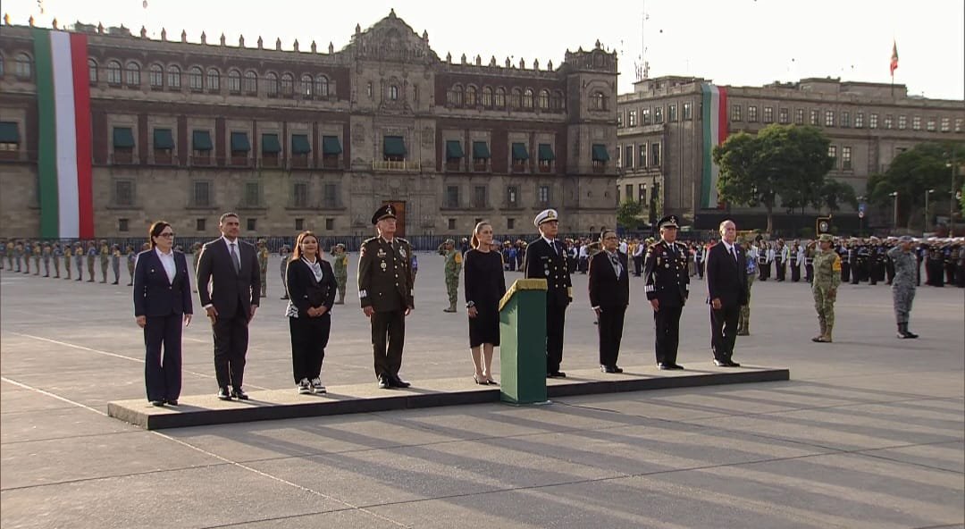Sheinbaum estuvo acompañada por integrantes de su gabinete, entre ellos los titulares de las Fuerzas Armadas, Seguridad y Gobernación, así como por la jefa de Gobierno de la capital, Clara Brugada.