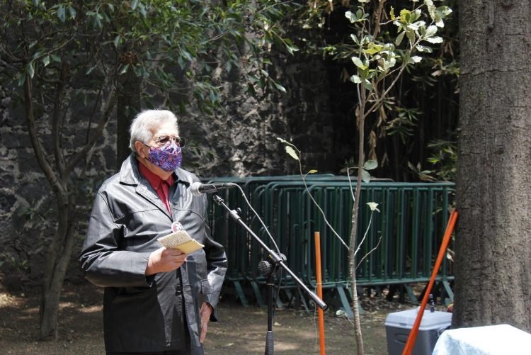 «Del hospital Rubén Leñero fueron sacados los heridos y después desaparecidos en el Campo Militar Núm. 1 Intelectuales del Estado, como Fernando Benítez, Octavio Paz y Carlos Fuentes declararon su apoyo al presidente. Este árbol se plantó el 12 de junio de 2021 en memoria de los masacrados y desaparecidos porque son nuestras raíces”.
