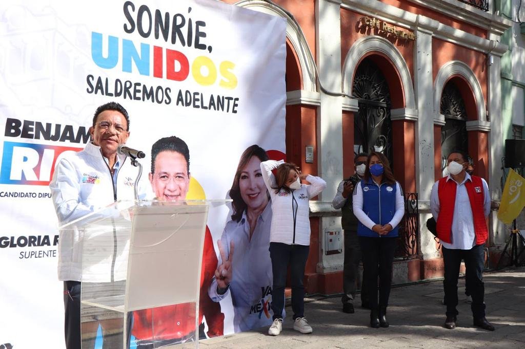 Pachuca.- En las inmediaciones de la plaza Juan C. Doria, acompañado por la militancia panista, perredista y priista, el candidato de la coalición Va por México a diputado federal por el sexto distrito de Pachuca Benjamín Rico Moreno, aseguró que son más los que creen en un México de planes y estrategias.