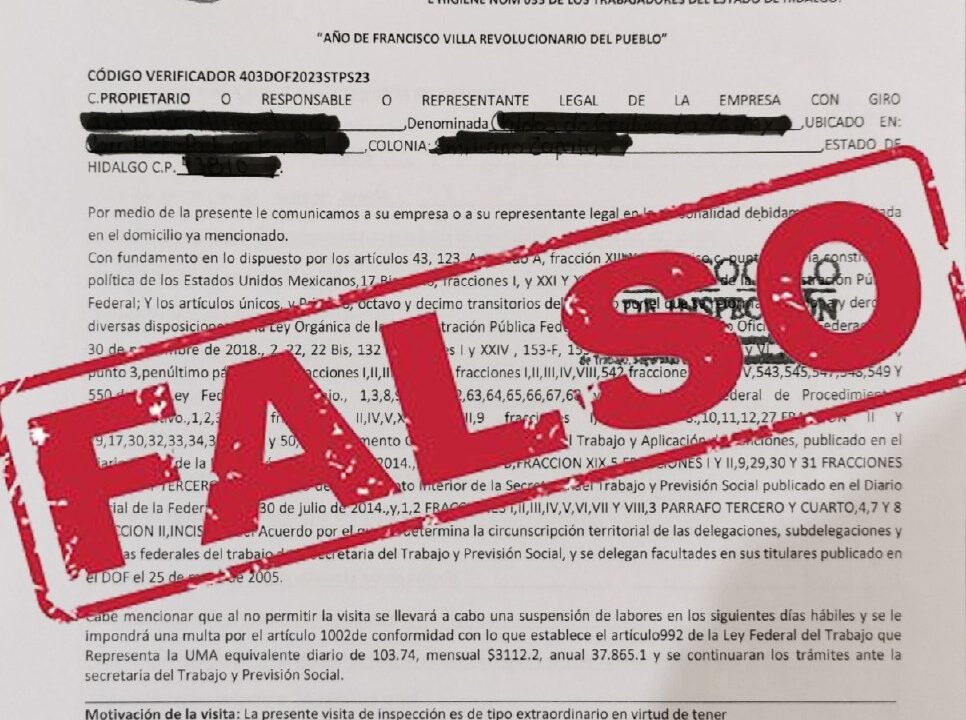 La STPSH señaló que los supuestos «inspectores» se presentan con documentos falsos, lo que podría afectar a las empresas