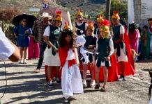 Niños recrean Viacrucis en Mineral de la Reforma, Hidalgo
