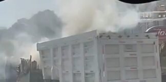 Enfrentamientos armados y quema de vehículos mantienen cerrada la circulación en la autopista México-Puebla, a la altura de Santa Rita Tlahuapan