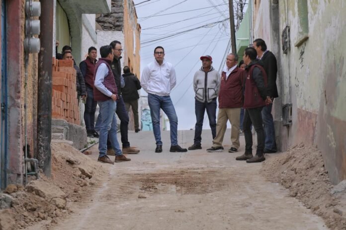 El recorrido de supervisión de obras comenzó en los barrios El Atorón y La Palma, donde se rehabilita la calle Observatorio. Este proyecto, que incluye cambio de drenaje y tomas de agua en un tramo de 850 metros lineales, reporta un avance del 60% y representa una inversión de 9 millones de pesos.