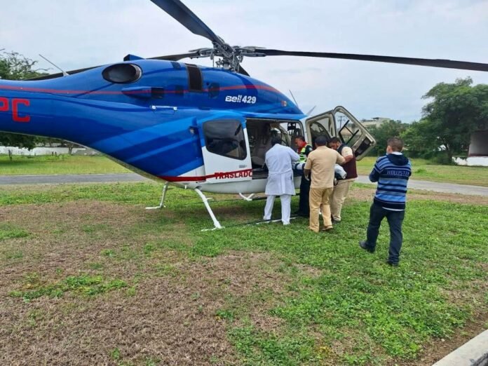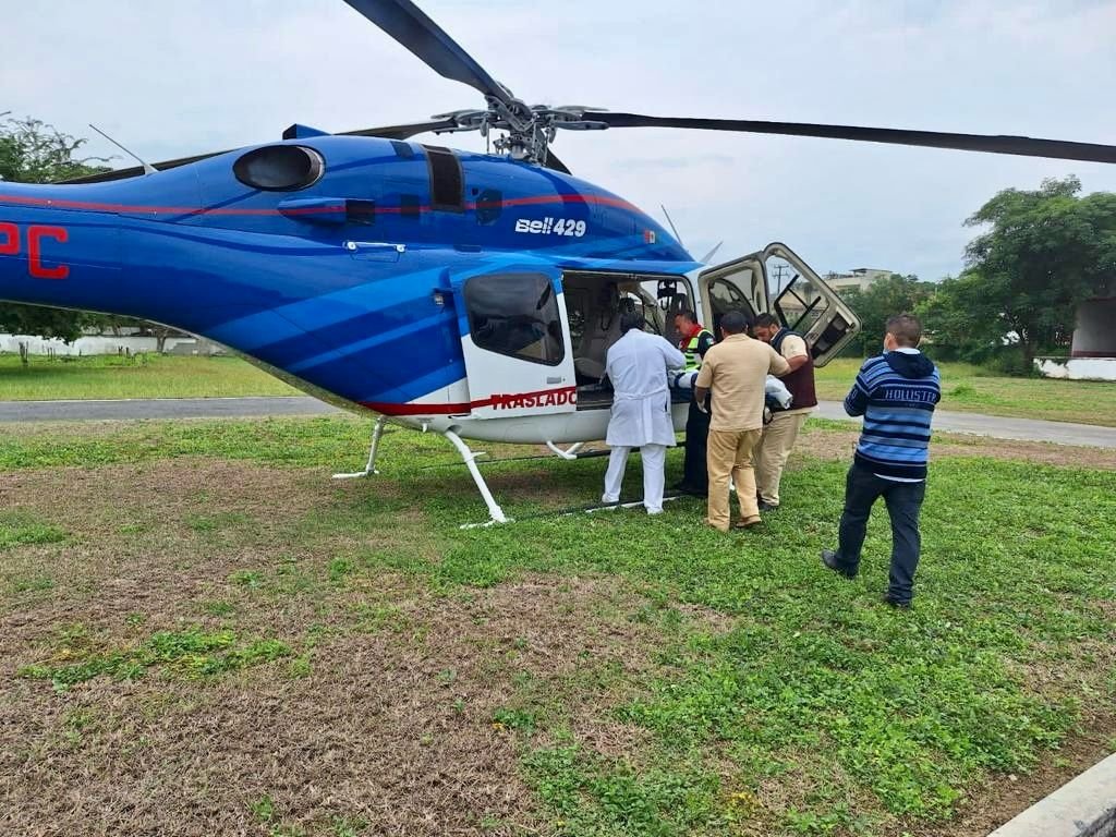 El traslado aeromédico se llevó a cabo a bordo del helicóptero Bell 429 XC-LPC del Gobierno de Hidalgo.