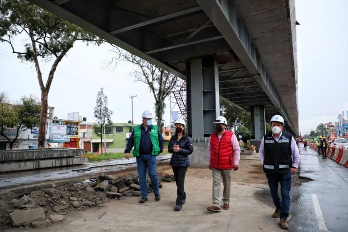 Ciudad de México.- La Jefa de Gobierno de la Ciudad de México, Claudia Sheinbaum Pardo, realizó un recorrido en la parte baja del tramo 2 -cerca del Deportivo Santa Cruz- de los trabajos de construcción del Trolebús Elevado Eje 8 Sur, Alcaldía Iztapalapa, que registra un avance del 79 por ciento y la obra completa será concluida en noviembre.