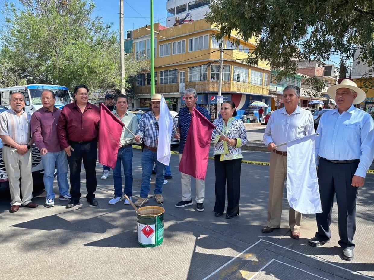 La presidenta municipal Lorena García Cázares dio el banderazo de inicio a los trabajos de balizamiento en 42 paradas de ascenso y descenso del transporte público, iniciando en el bulevar Pleasanton.