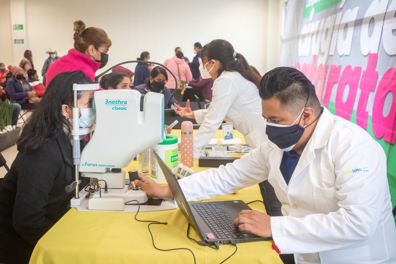 La funcionaria de Ericka Miralrío señaló que en Tulancingo se organizan entre 4 y 5 campañas correctivas de cataratas cada año y esto permite un ahorro considerable a las familias con impedimento económico para acceder a atención particular.
