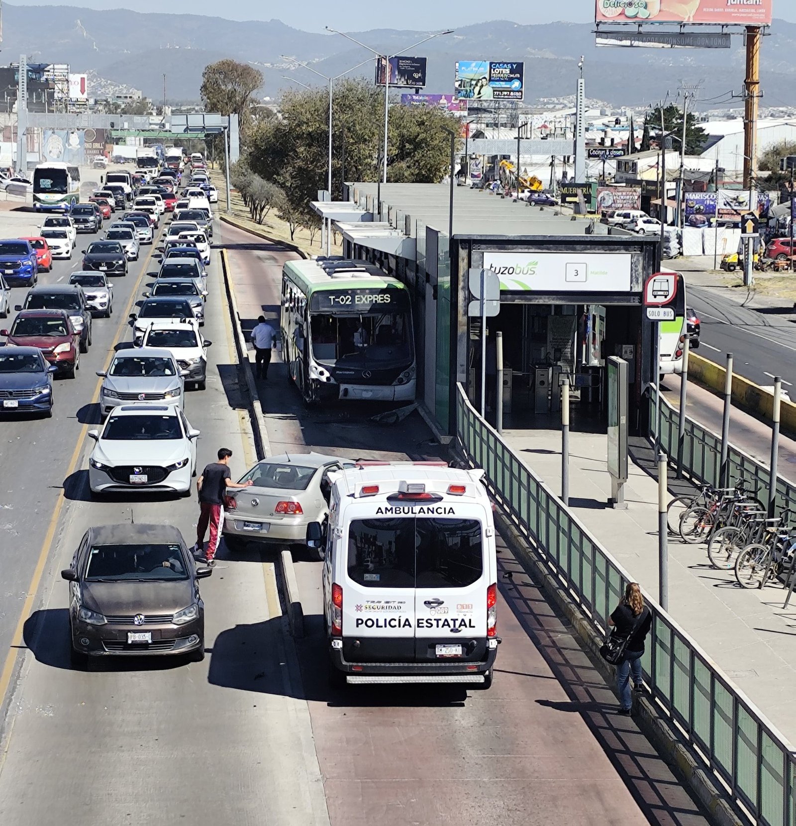 El Sistema Integrado de Transporte Masivo de Hidalgo (SITMAH) informó que la mañana de este miércoles una unidad de la Ruta Troncal del Tuzobús fue impactada por un automóvil particular cuando se encontraba acoplada en la estación Matilde, en sentido sur.