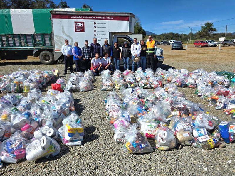 Con la finalidad de respaldar a las familias afectadas por las intensas lluvias que golpearon a 28 municipios de Hidalgo, la comunidad de la Universidad Autónoma del Estado de Hidalgo (UAEH) llevó a cabo la entrega de víveres recolectados durante el Garzatón 2025, así como donaciones enviadas por la comunidad puma de la UNAM.