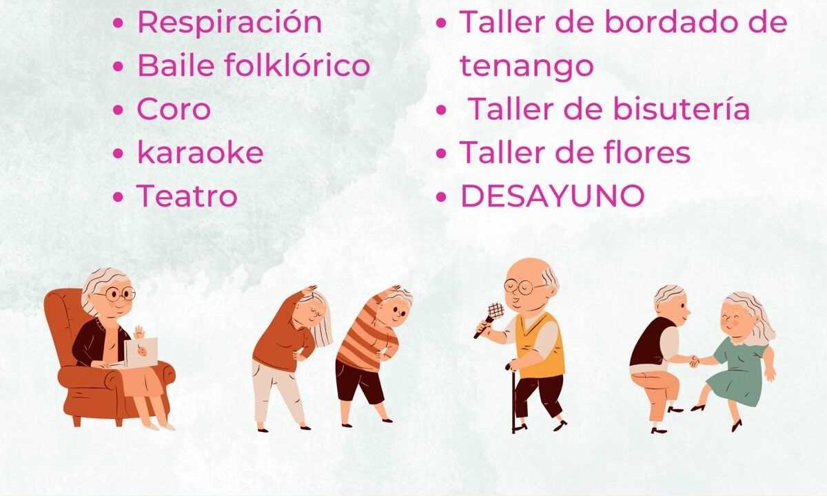 En la Casa Club del Sistema DIF Tulancingo tendrás acceso a una variedad de servicios, como: gimnasia, ejercicios de respiración, baile folklórico, coro, karaoke, teatro, gimnasio, taller de bordado de tenangos, taller de bisutería, taller de flores, y un desayuno nutritivo por tan solo $19.