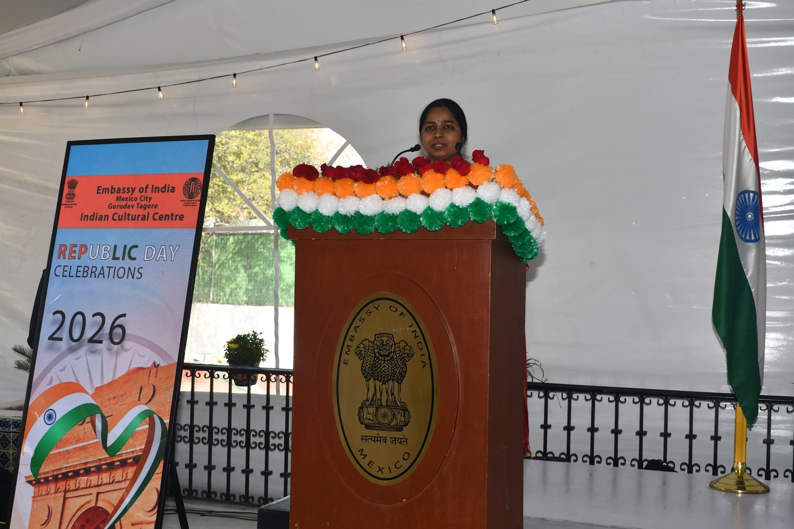 Acompañada en el presídium de honor por José Octavio Tripp Villanueva, director general para Europa de la Secretaría de Relaciones Exteriores (SRE) y por la diputada federal Marcela Guerra Castillo, la diplomática india resaltó los 75 años de relación bilateral entre India y México, cumplidos el pasado 1 de agosto de 2025, y en ese marco destacó reuniones entre líderes políticos y empresariales de ambas naciones, siendo la más importante la que sostuvieron el Primer Ministro de India, Nerendra Modi con la Presidenta de México, Claudia Sheinbaum Pardo, en la Cumbre del G7 celebrada en junio de 2027 en Alberta, Canadá.