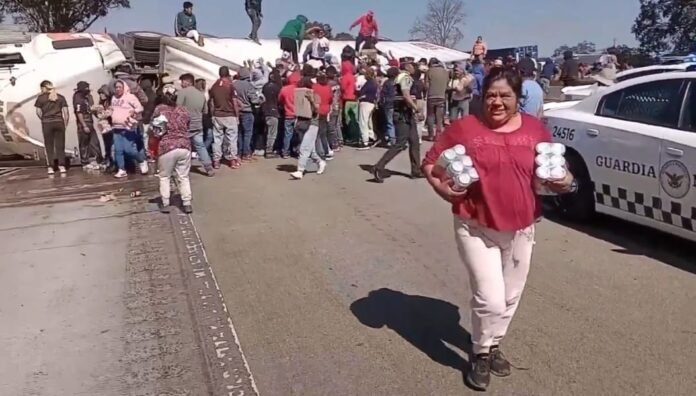 De acuerdo con los primeros reportes, tras el percance la mercancía quedó dispersa sobre la carpeta asfáltica y a un costado de la vía, lo que provocó la movilización de automovilistas y habitantes de la zona, quienes incurrieron en actos de rapiña, llevándose cajas y botellas del producto sin importar el riesgo.