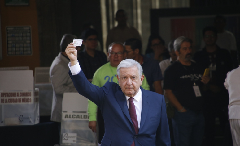 Andrés Manuel López Obrador, presidente de la República, votó alrededor de las 8:30. Ante la pregunta de ¿a quién votó? respondió «Ánimo».