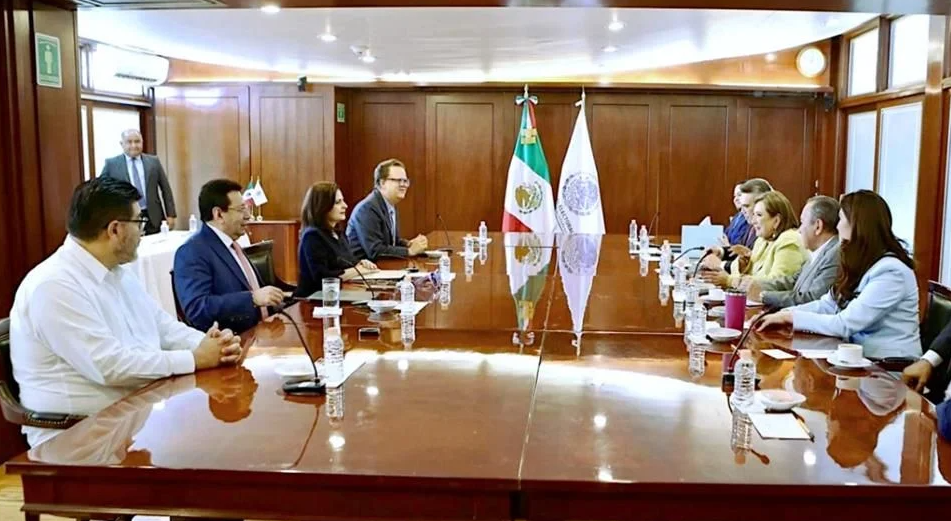 La abanderada de la coalición Fuerza y Corazón en reunión a puerta cerrada con los cinco magistrados de la Sala Superior del TEPJF a quienes expuso su lamento porque dicho órgano jurisdiccional no cuenta con facultades suficientes para sancionar la intervención de AMLO.