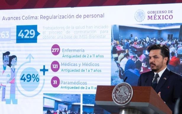 En el caso de Colima, Zoé Robledo señaló que para dar certeza laboral al personal de salud se tiene una meta de regularizar a 870 trabajadores eventuales, de los cuales 429 han iniciado el proceso de contratación para obtener una base.